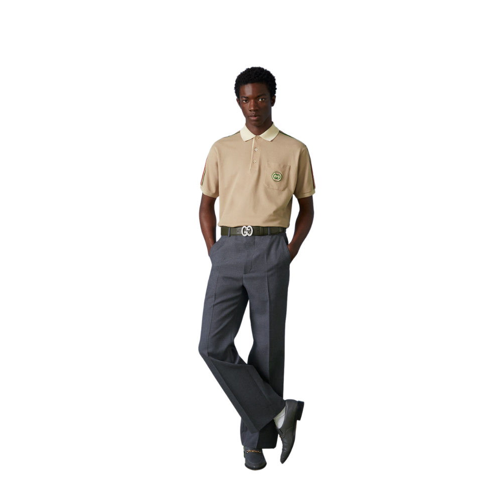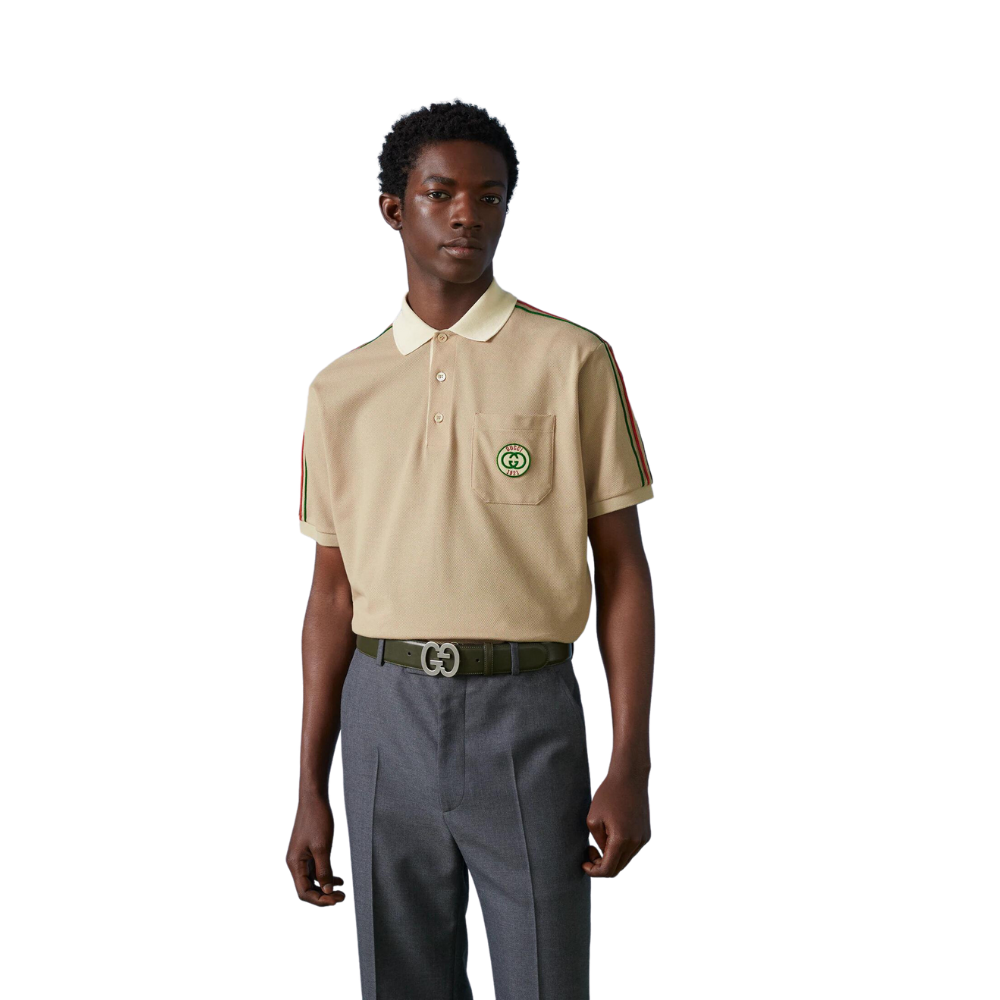 À la fois sportive et rétro, l'interprétation des vêtements de sport de Gucci transparaît dans son logo Interlocking G de la nouvelle collection. Le motif subtil, avec juste une touche d'inspiration nostalgique, orne ce polo polyvalent, qui est encore défini par une bordure Web contrastée.